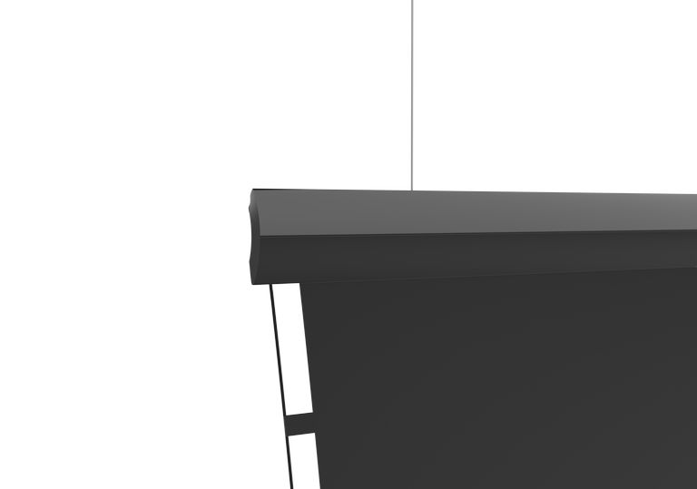 Особенностью данной серии проекционных экранов является увеличенный экстрадроп (верхнее черное поле и вытяжные тросы) – 4,7 метра.