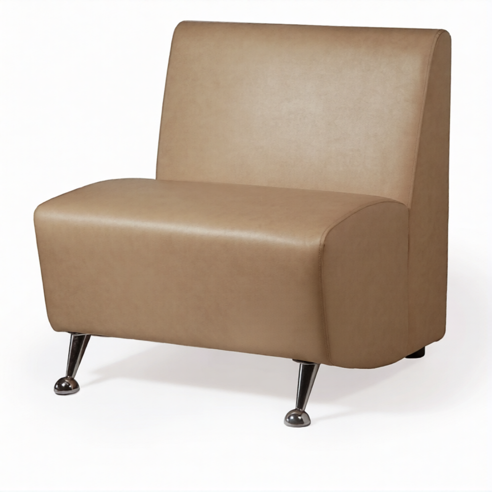 Обивка из искусственной кожи категорий "Эконом", "Стандарт" или "Элит" позволяет выбрать вариант, наиболее соответствующий вашим предпочтениям и потребностям в уходе. Опоры диван-кресла хромированные, что придает ему современный и элегантный вид. Модель не имеет раскладного механизма. Мебель поставляется в собранном виде. Максимальная нагрузка на ложе составляет 140 кг.