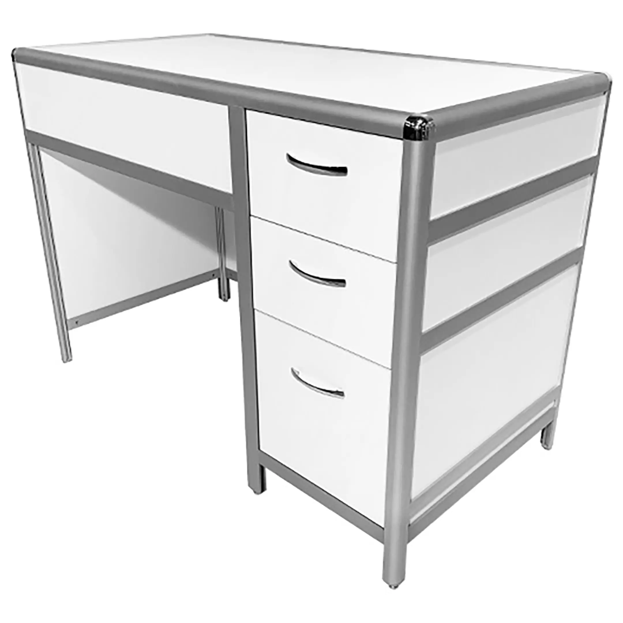 Стол лабораторный MED 10.003al (белый) представляет собой идеальное решение для организации рабочих мест сотрудников в лабораториях и медицинских учреждениях. Модель оснащена боковой тумбой с тремя выдвижными ящиками. Каркас выполнен из алюминиевого профиля, столешница из ЛДСП толщиной 16 мм.