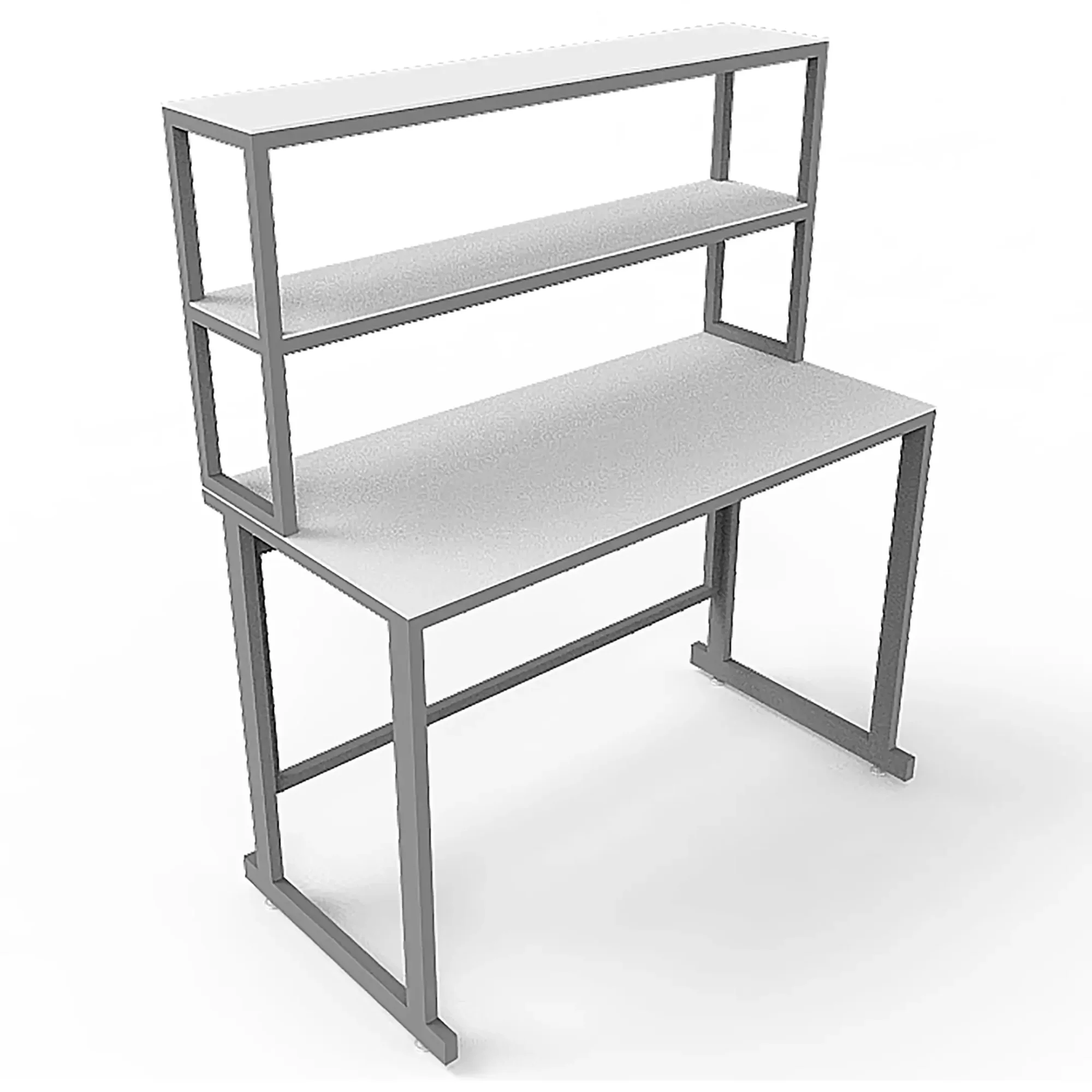- Функциональная надстройка — две полки для дополнительного размещения оборудования, общая высота стола с надстройкой 1250 мм.