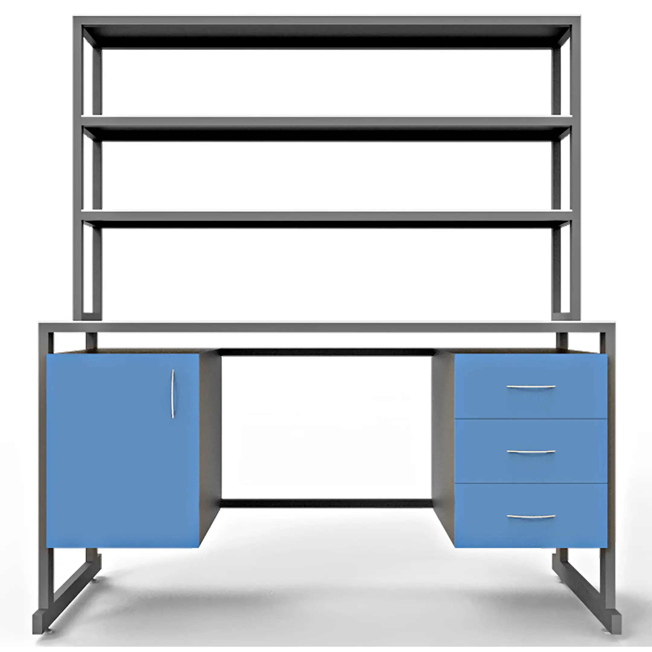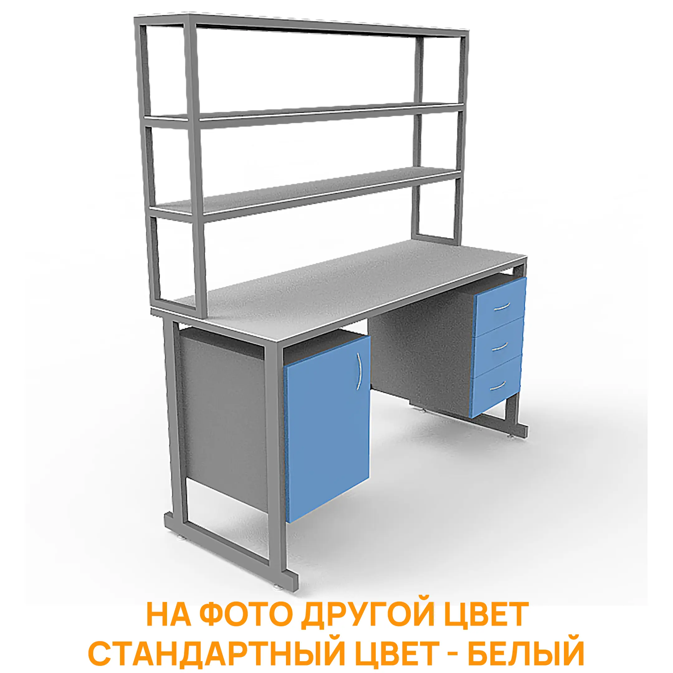 - Функциональная надстройка — две полки для дополнительного размещения оборудования, общая высота стола с надстройкой 1850 мм.