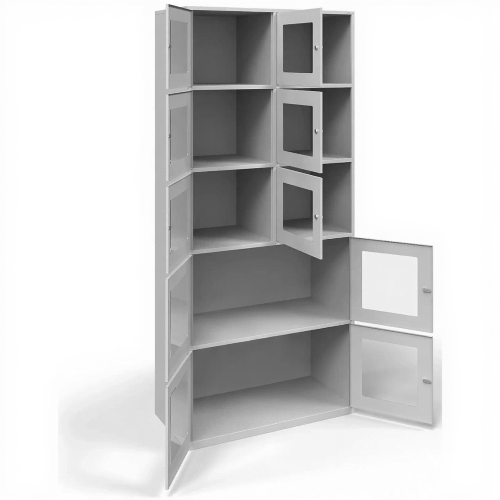 - Эстетичный внешний вид и профессиональное восприятие — модель имеет строгий и современный дизайн. Наличие окошек не только функционально, но и создает впечатление открытости и порядка, что важно для имиджа библиотек, офисов, медицинских и образовательных учреждений.
