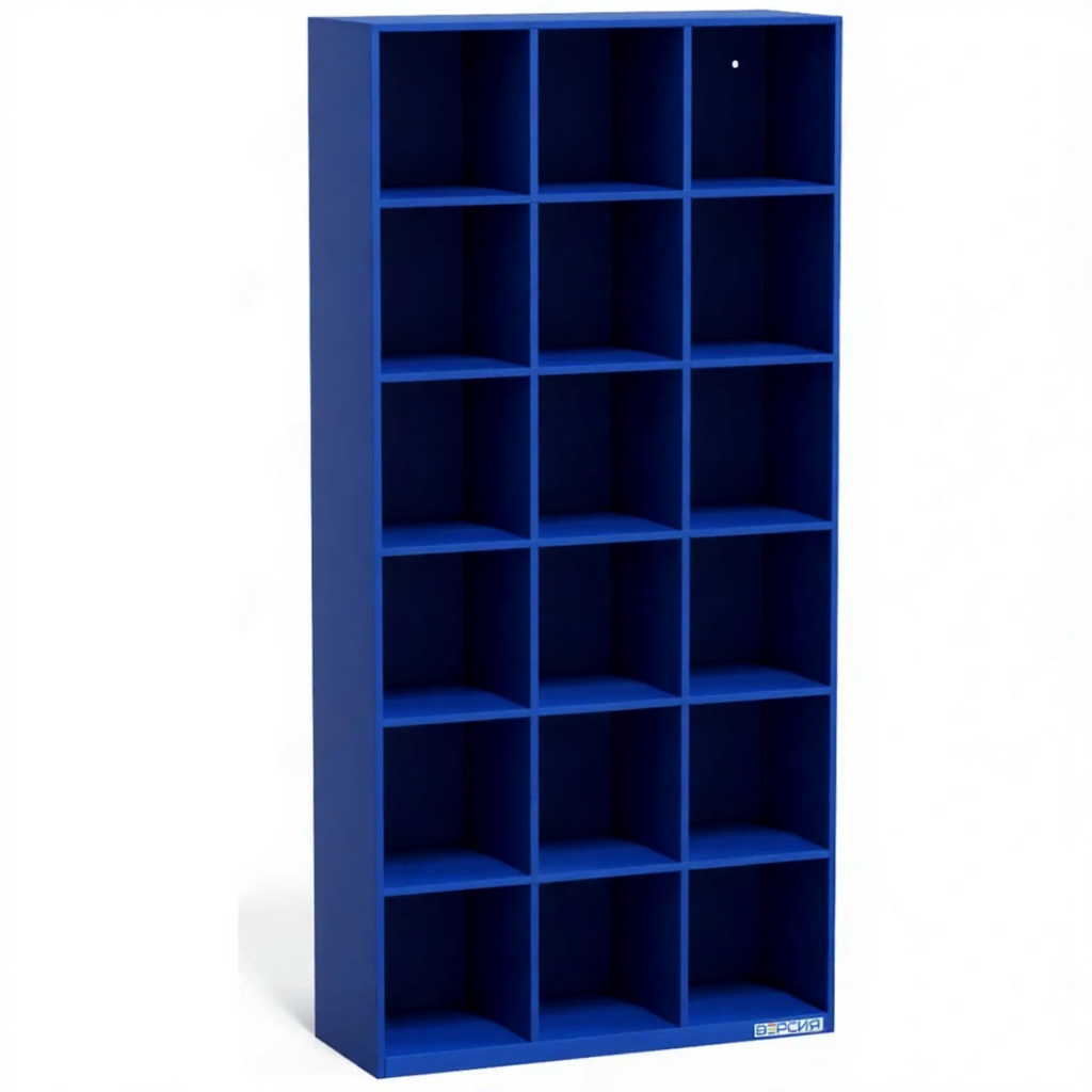 Шкаф для обуви на 18 ячеек ОБ-18О — это шкаф открытого типа для хранения сменной обуви. Отсутствие дверок обеспечивает максимально быстрый доступ, отличную вентиляцию и простоту в уборке, что делает модель особенно удобной для детских садов, начальных школ и мест с высокой проходимостью.