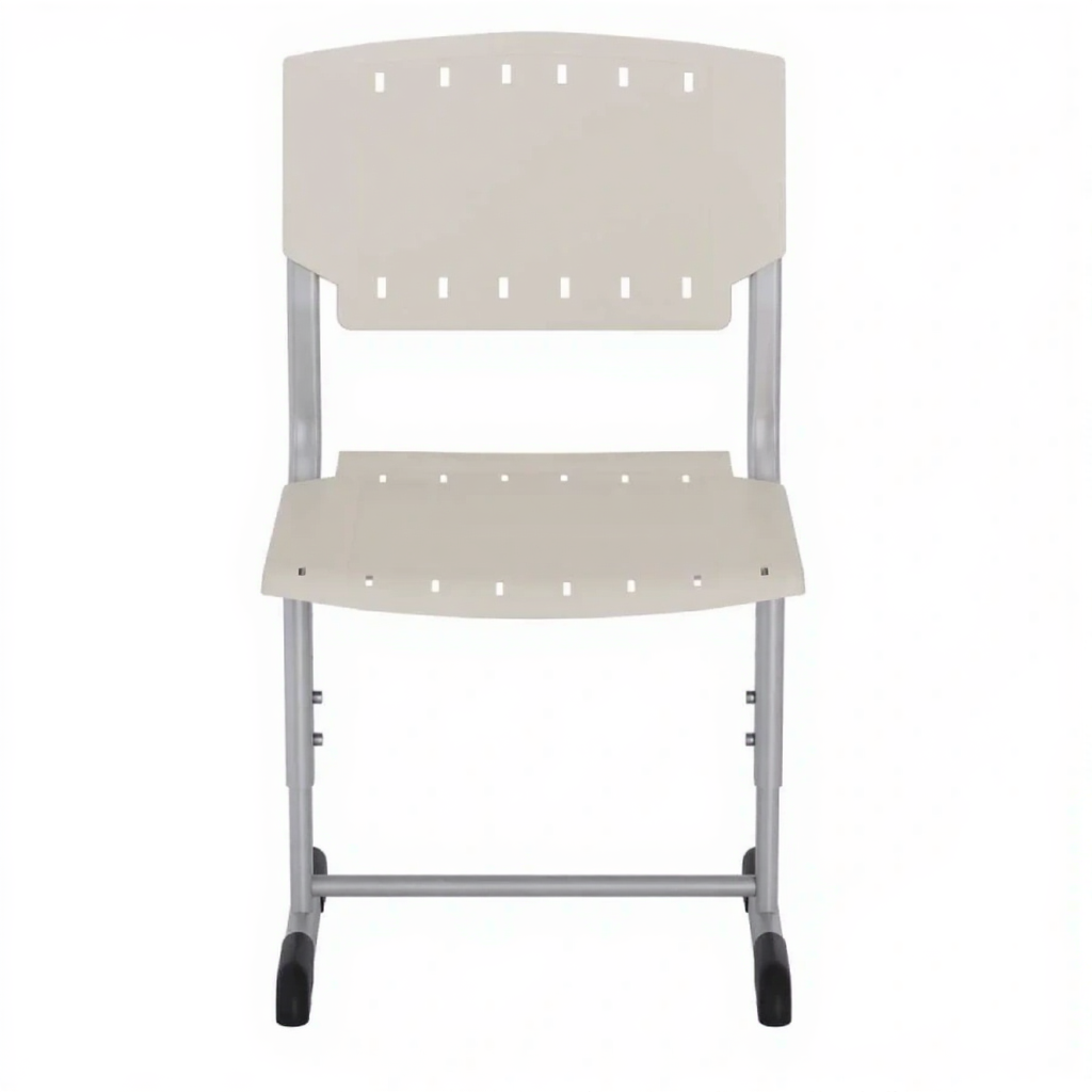 • Пластиковое сиденье и спинка — износостойкий материал, легко очищается и сохраняет форму при длительном использовании.