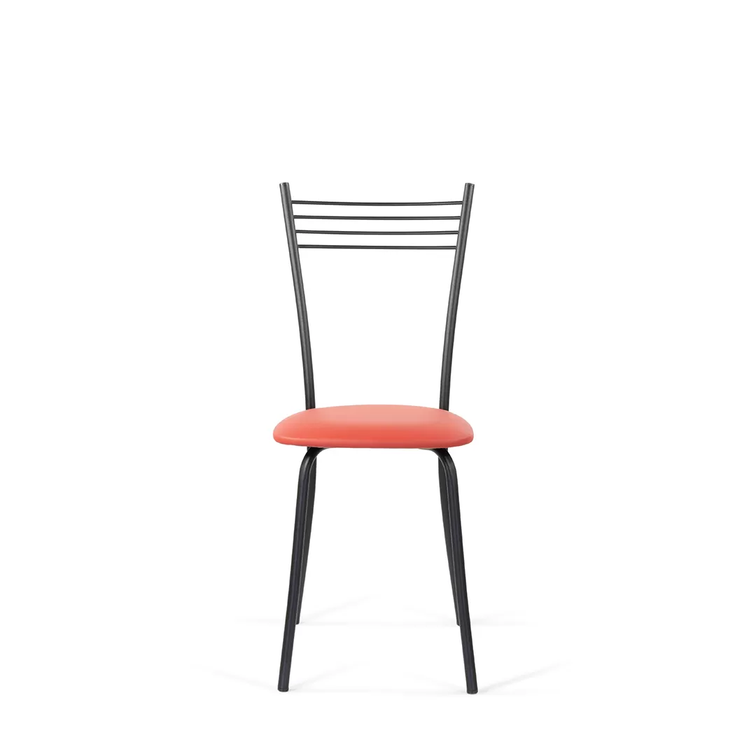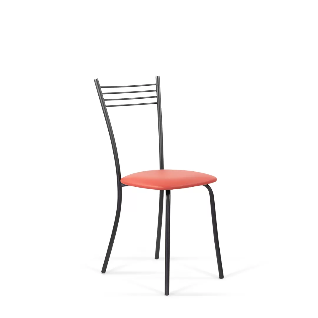Эта лаконичная модель прекрасно подойдет для обеденной зоны. Стул, изготовленный из металла, эффектно смотрится в современном интерьере.  Удобная высокая спинка с горизонтальными прутьями и мягкое сиденье обеспечивают комфорт.
