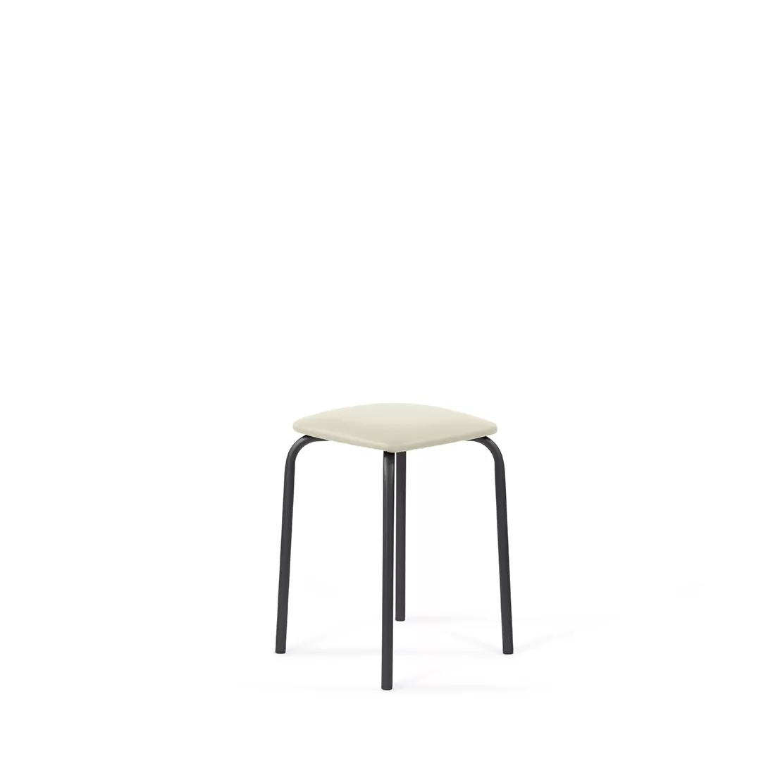 Каркас табурета выполнен из металла, на котором расположено мягкое прямоугольное сиденье