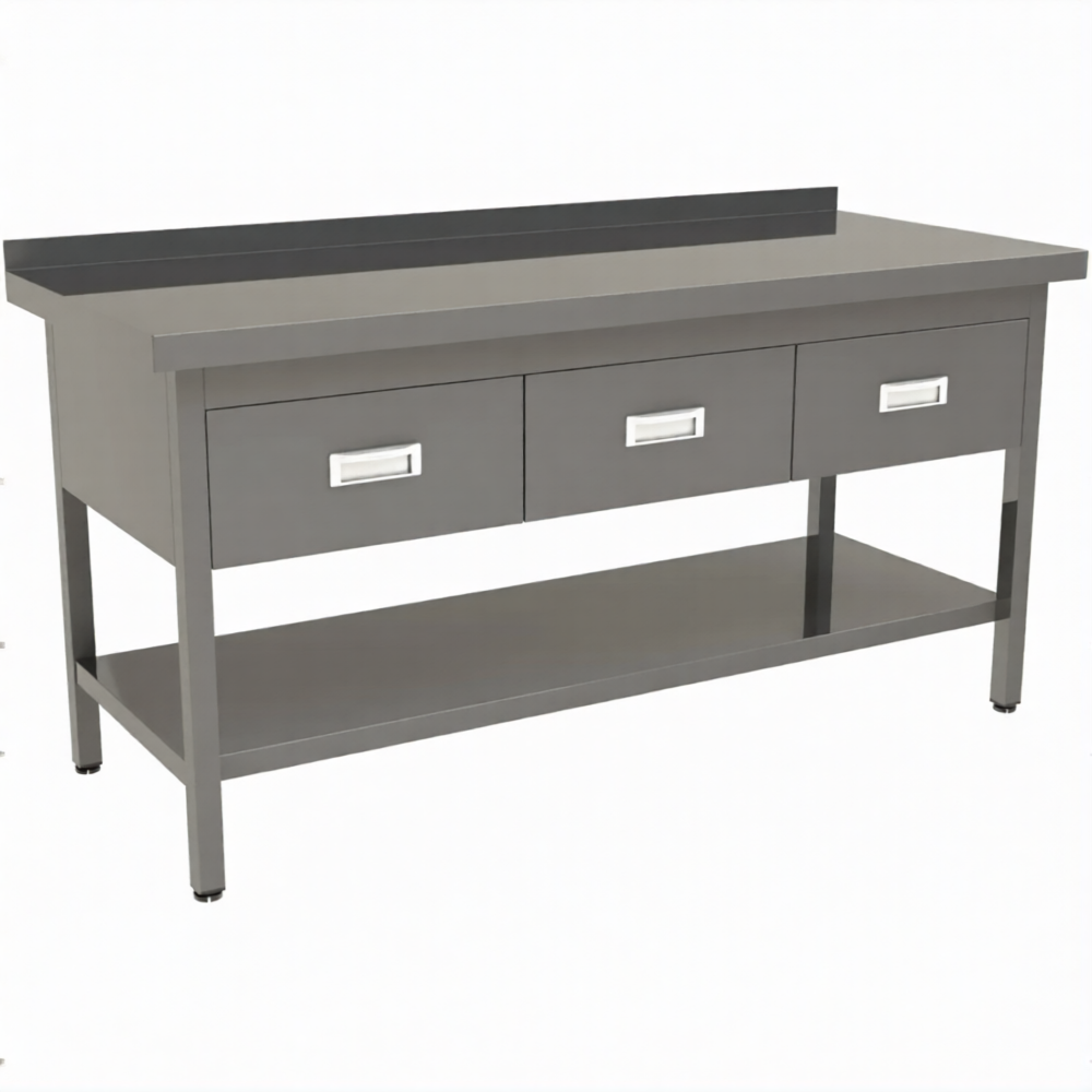• 3 выдвижных ящика из нержавеющей стали.