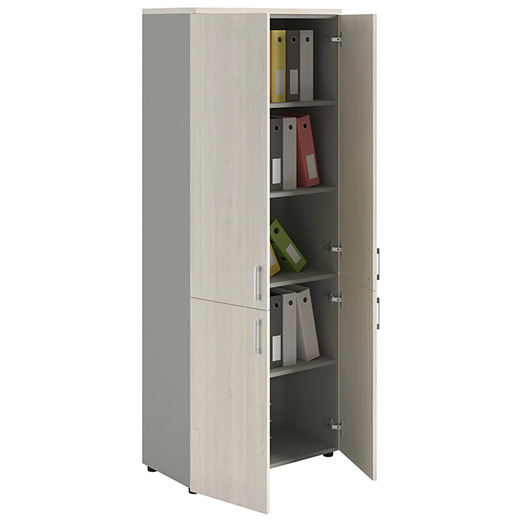 Шкаф NW 2080/4 закрытый белое дерево/серый предназначен для хранения.