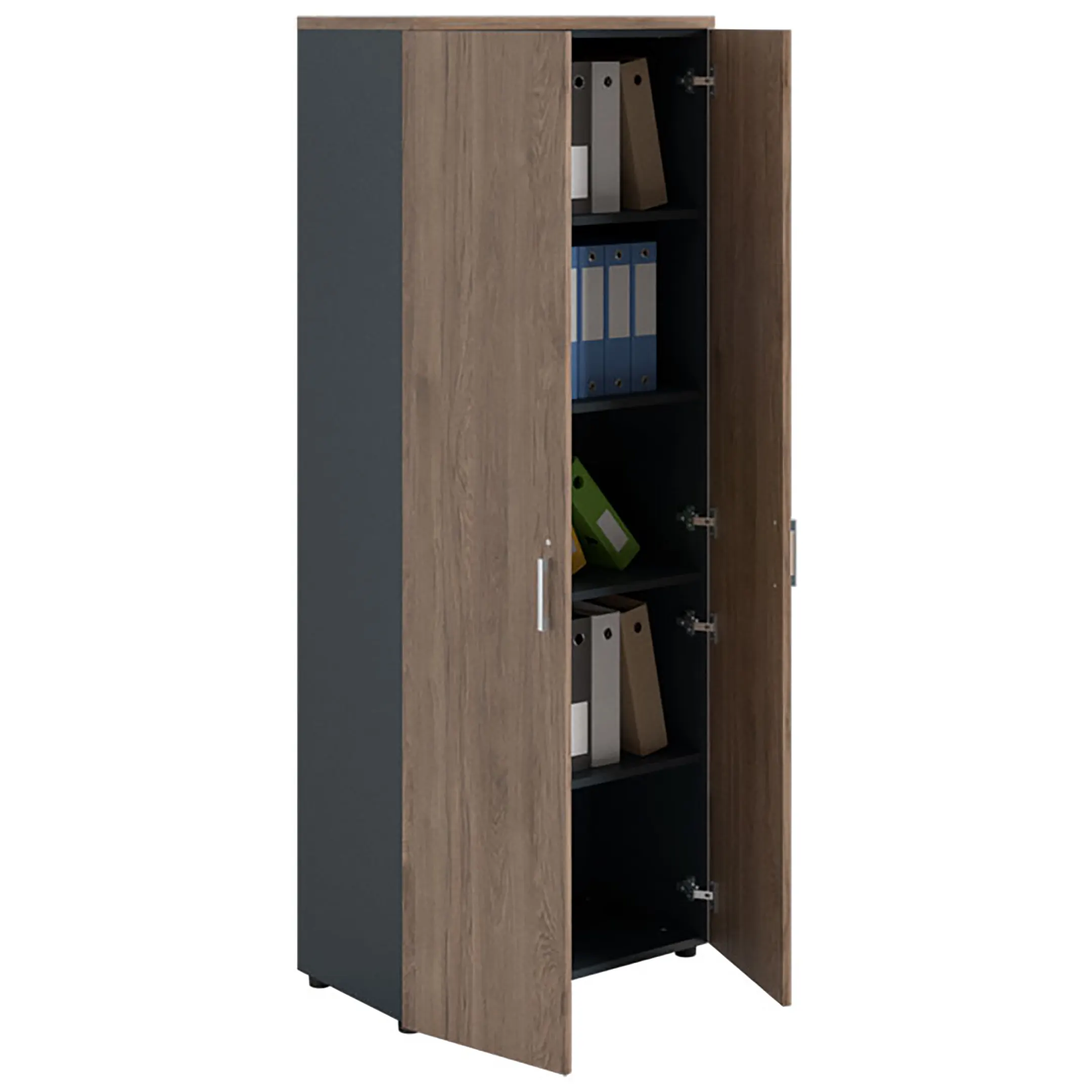 Шкаф NW 2080 закрытый темный орех/антрацит предназначен для хранения.