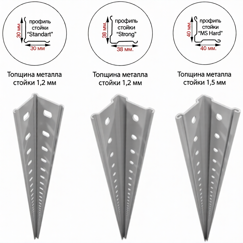 - толщина металла стойки – 1,2 мм;