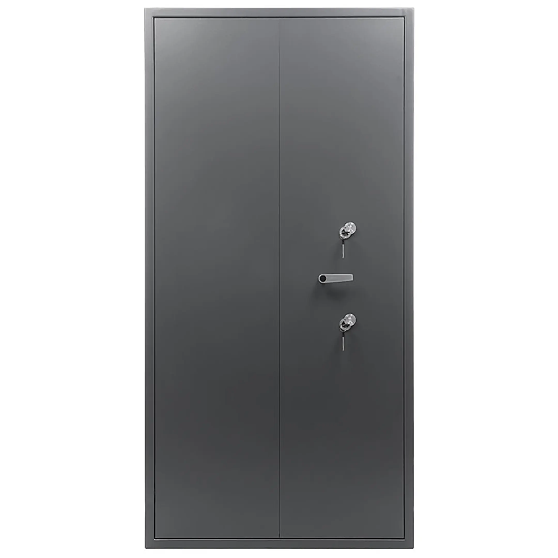 • комплектуется двумя ключевыми сувальдными замками класс 2 ГОСТ 5089-2011 (по 2 ключа от каждого замка в комплекте) с опечатывающими устройствами. Поворотная ручка для удобства открывания и закрывания. Левая створка двери оборудована двумя подпружиненными самозапирающимися защелками (вверх и вниз) с приводом от ручки находящейся на внутренней стороне створки двери