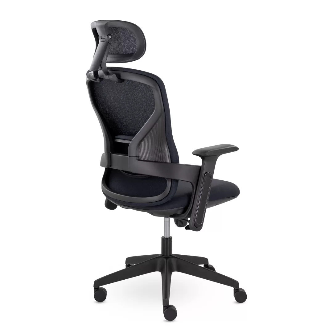 - Современный дизайн — черный каркас и лаконичные линии создают аккуратный, стильный и профессиональный внешний вид кресла.