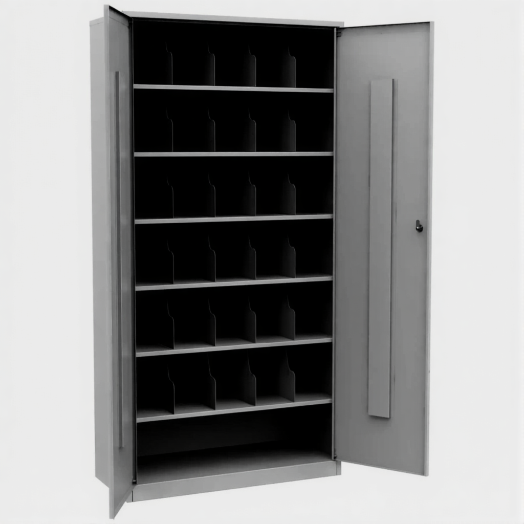 - Универсальность размещения — стандартные габариты и классический дизайн позволяют установить шкаф в учебном классе, производственном цехе, пункте выдачи средств индивидуальной защиты или другом специально отведенном помещении.