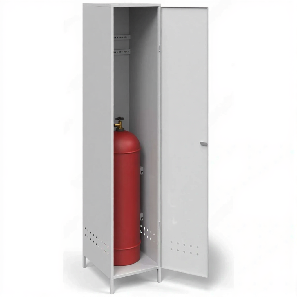 - Надежная защита имущества и выполнение нормативов — усиленный запирающийся корпус с надежным замком эффективно предотвращает кражу баллона и его комплектующих. Использование такого шкафа является весомым аргументом при проверках соблюдения правил пожарной безопасности (ППБ) и промышленной безопасности на предприятиях.